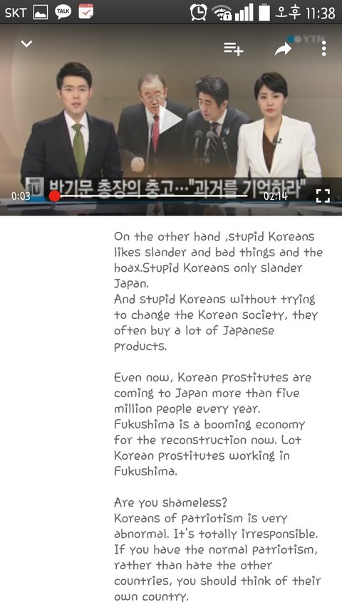그녀들은 창녀이다 라고 언급한 부분과 한국어는 저속한 언어이다. 아무도 그 말을 배우려고 하지않는다.라는 점에대해 비판을 하였고 그는 일체의 사과도 없이 그냥 그 부분만을 삭제해버렸다 그 외에도 정말 몰상식한 언행이 다반수이다.부디 그가 정신을 차렸으면 하는 바램이다. 캡쳐 ytn news 채널 in youtube