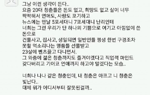 한창 예쁜 나이 젊은 애들 연애하는 거 응원은 못 해줄 망정 왜 욕하냐고 그렇게 말하는 사람들도 있겠지만 시발 너무 이기적인거아니냐? 연애할꺼면 들키지를 말던가 ㅅㅂ 지들이 쉽게 번 돈 펑펑쓰고 팬들을 돈줄로 보니까저러겠지