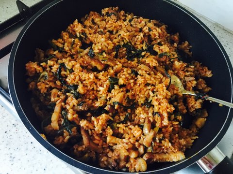 엄마표 김치볶음에 밥만 볶은 김뽁