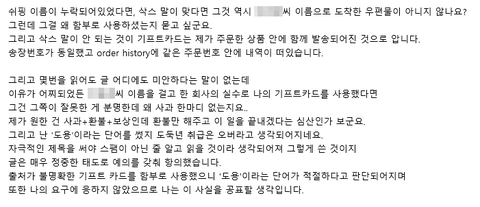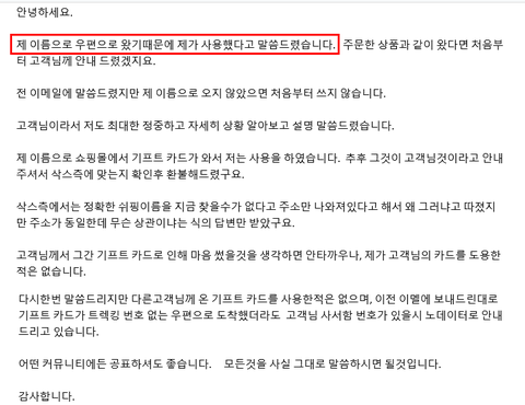제 기프트카드를 사용한 사람은 제가 이용한 배대지 대표라는 것을요..