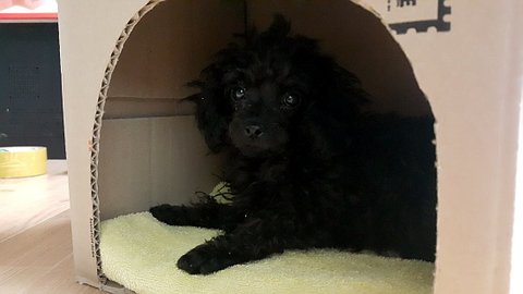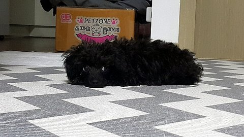처음 우리집에 온날 집이 없어서 박스로 임시 집을 만들어 주었어요~^^