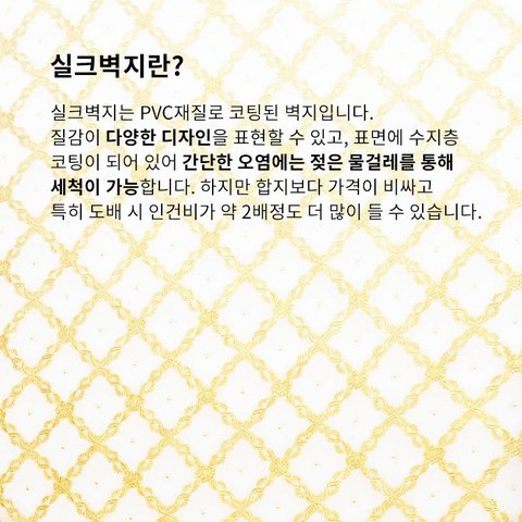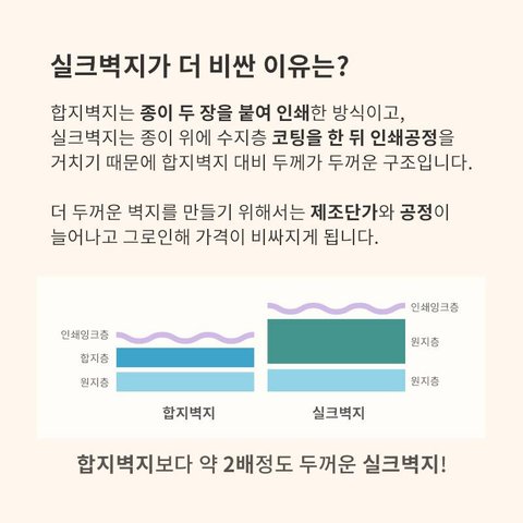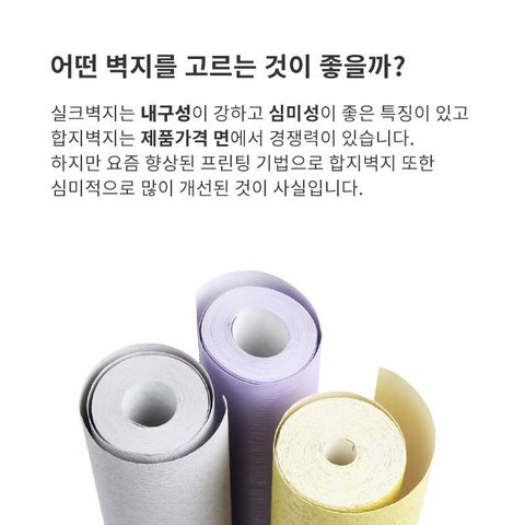 어떤 도배업자는 아이키우는 집은 합지로 하라고~ 실크벽지는 유해물질이 나온다고 안좋다고하더라구요. 천연벽지는 넘나 비싸고 ㅠ_;;