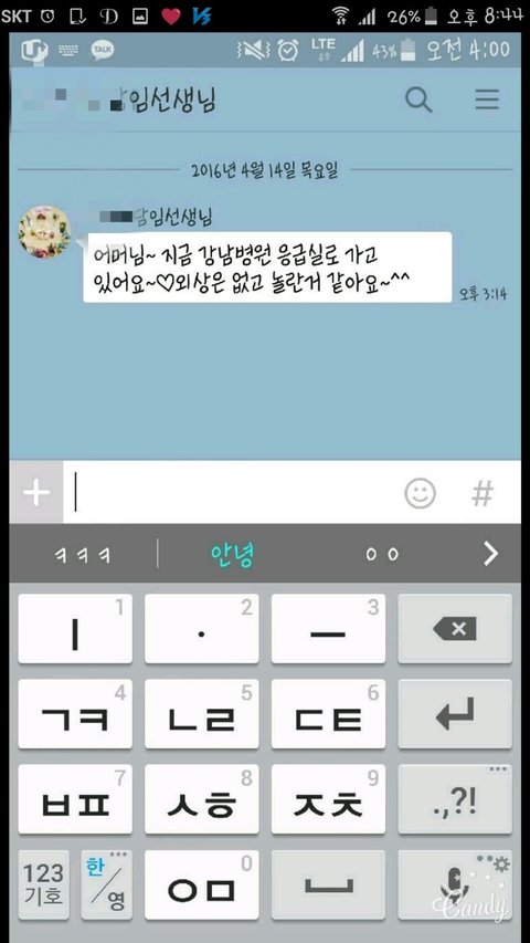 대략 1시간정도 흘렀을쯤 저희아기가 끝내사망했어요ㅜㅜ이게 말이나됩니까 애가 그렇게 될동안 응급차에 실려오면서 걱정하지말라는 하트에 웃음표시 까지있는 카톡을보내왔더군요(사진첨부합니다)
