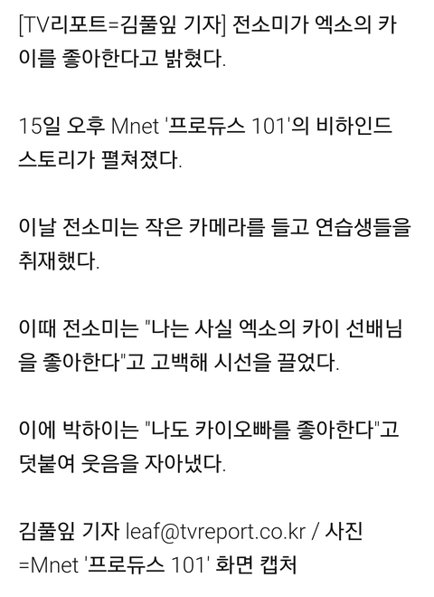 전소미 "엑소 카이 선배님 좋아해요"