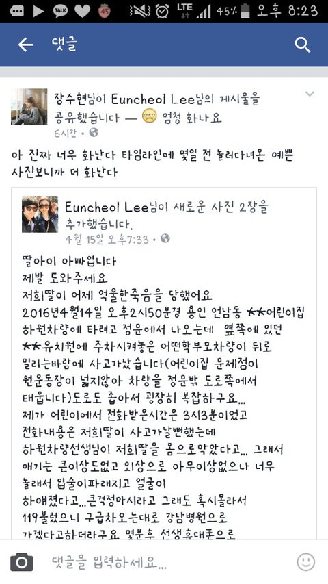 근데 뉴스에서는 차량이밀려 4살여아가 죽은것만 이슈가되서나오네요 정작 어린이집에서 거짓말로 저에게 전화를했고 그런식으로 조치를해서 저희아이를 죽음으로 몰았는데 말이죠 이억울한일을 어쩌면좋을까요 저희아이 3월부터 고작1개월 이어린집에 다닌건데 어쩜 이런일이 생겼는지 너무억울합니다 이글좀 퍼트려주세요 제발도와주세요