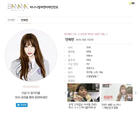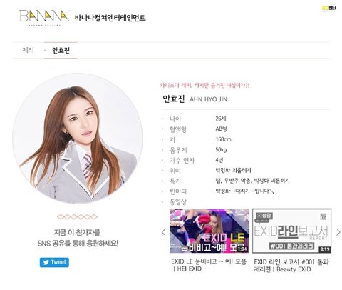 8회 프로듀스 연습생 EXID 프로필