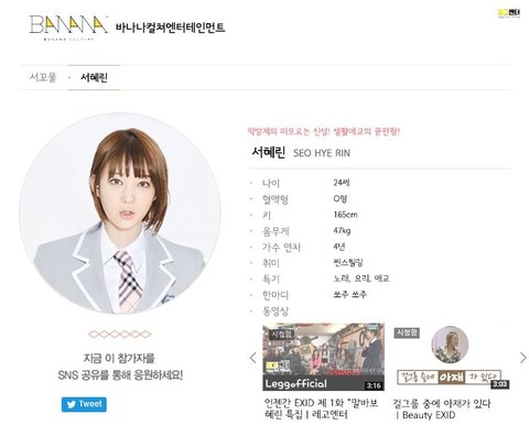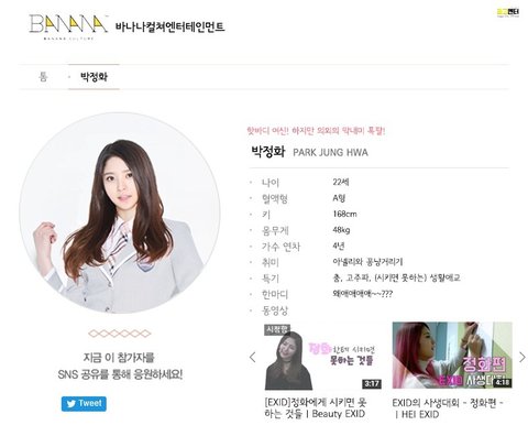 프로듀스 연습생 EXID 프로필