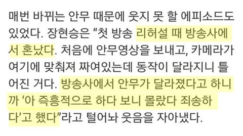 장현승 본인이 상의하지 않은 퍼포먼스를 선보여 ‘혼났다’고 직접 언급했습니다.