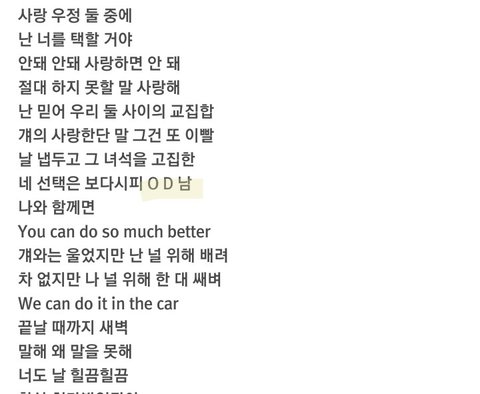 장현승의 솔로 앨범 수록곡 중,‘토끼’가 피쳐링한 ‘걔랑 헤어져’라는 곡에는 다음과 같은 가사가 있습니다.