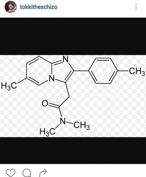 또 이러한 이미지를 업로드 한 적이 있는데, 해당 분자식은 항정신과약제이며 그 효과 때문에 오남용 되기도 하는 졸피뎀(Zolpidem) 입니다.
