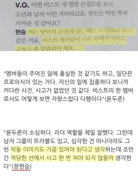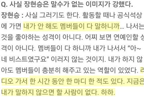 그리고 장현승의 그룹활동에서의 마음가짐을 조금이나마 짐작할 수 있는 인터뷰가 있습니다.