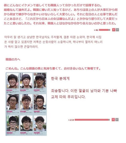 한국남자들아 댓글에 일본 연예인 소환하지 말고