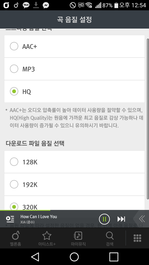 음질이랑 다운로드파일음질 저거 뭐로해놓으면되??