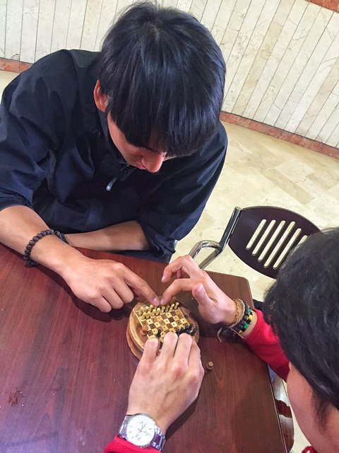 기차를 예매하고 기다리며 무료한 시간을 보내기 위해, 승재가 인도에서 구입한 체스를 했어요! 뭐.. 세판해서 다 이겼네요. (이 글을 본다면 연습을 해서 도전하도록, 승자는 피하지 않는다! 음하하!!!!)
