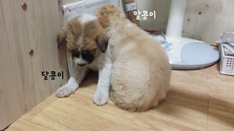 고물상에사는 어미견에게서 태어난 알콩이와 달콩이입니다.