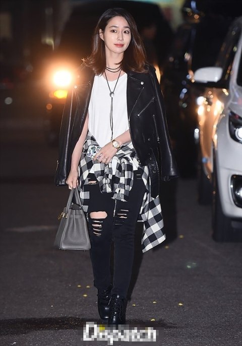 찢어진 바지를 입은 이민정