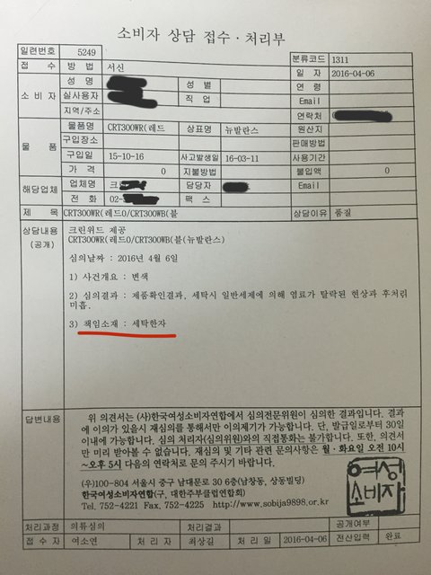제가 집적 알아본 후, 여성소비자센터에 제가 직접가서