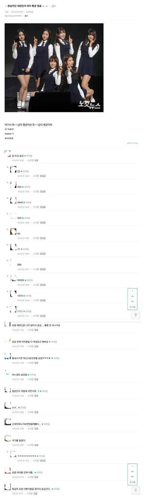 요즘 여자들이 걸그룹급이란 게 아니고 여자친구가 걸그룹 정도 외모가 못 되는 거 ㅇㅇ