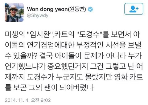 그런 애들은 이제껏 경수 연기도 제대로 안 봤을 거면서