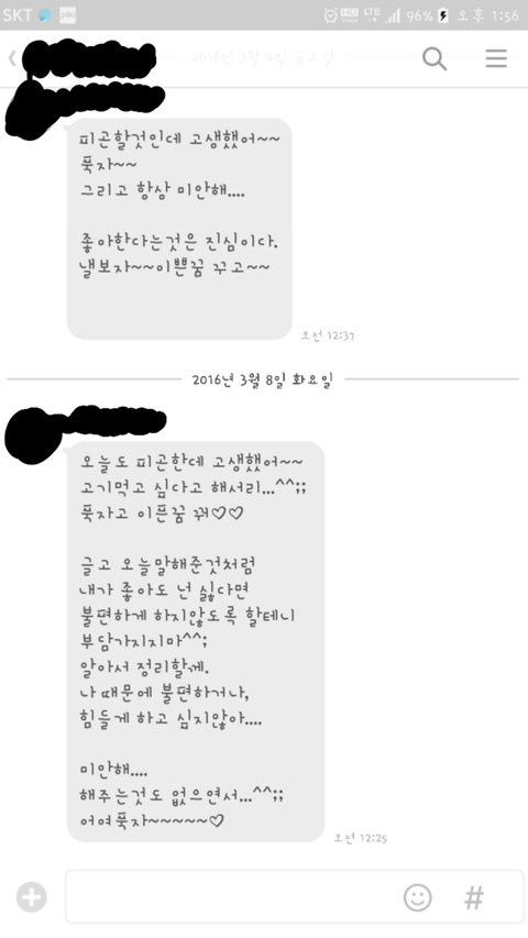 연락이오는거에요 끝나고 잘들어갔느냐, 저녁은 먹었느냐