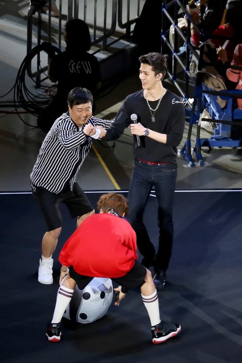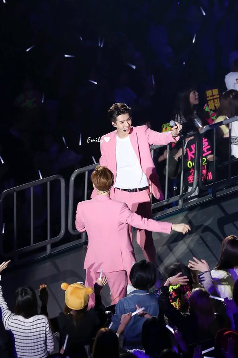 핑크슈트에 흰티 매치해서 완전 깔끔한 스탈로 짠 등장