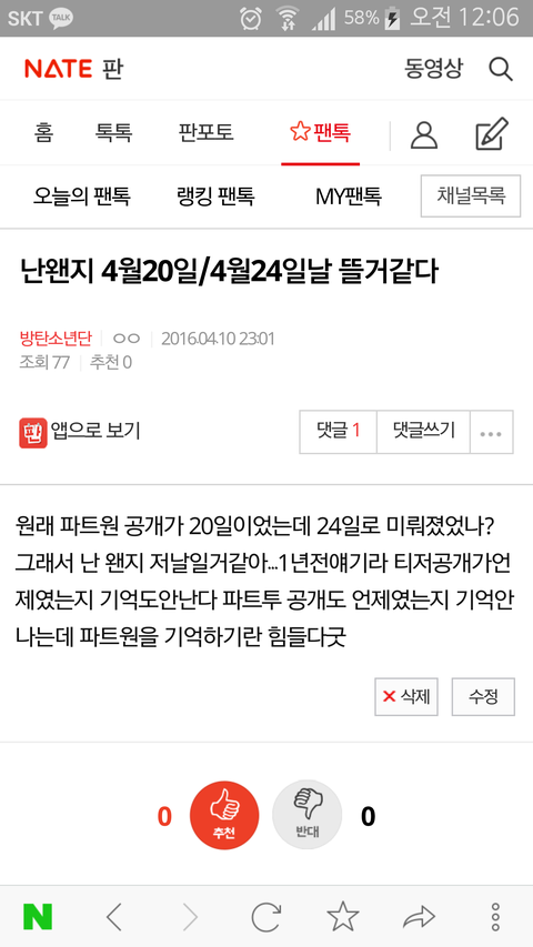 오늘의 팬톡