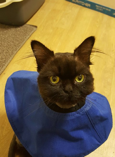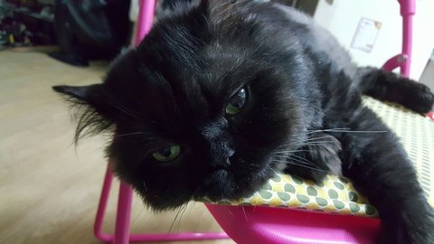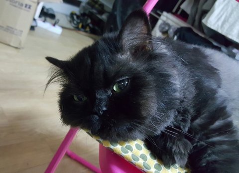 이 사진은 고양이 보험들 때 제출한 검둥이 증명사진이에요.