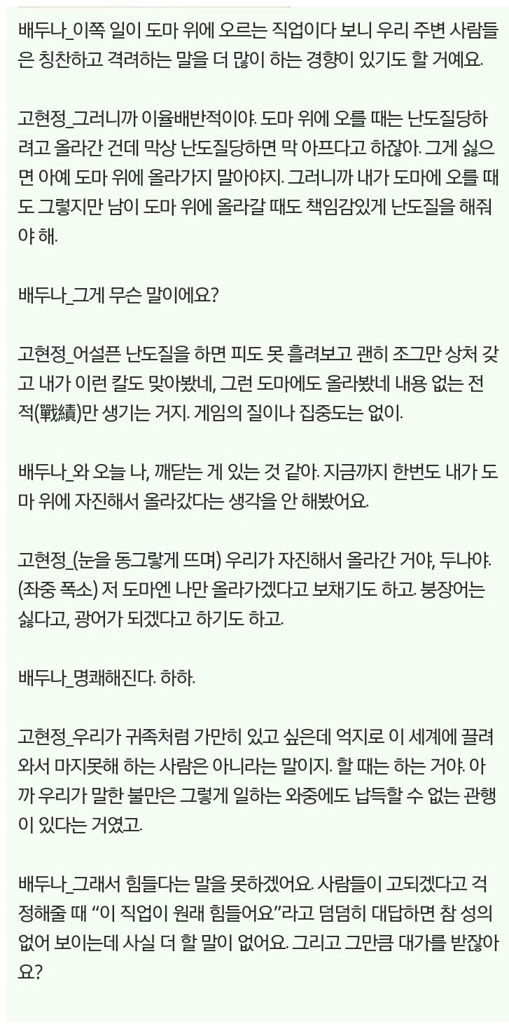 그냥 글만읽는데 소름돋았음 고현정 생각하는거 진짜 멋있는듯