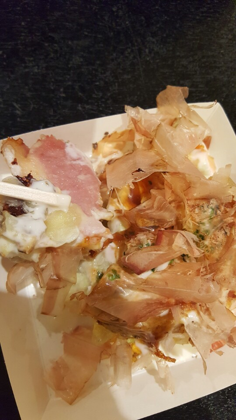 위에 뿌려져 있는 소스랑 가쓰오부시로 더더 맛있었고!!