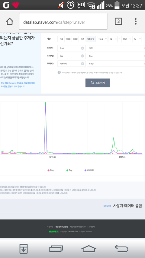 화력 얘기 나오고 총공 얘기 나오니까 생각나서 검색량 찾아봤는데 제일높이 올라간거가 일터졌을때고 두번째가 영와프 세번째가 필쏘굿이야 그일 났을땐 일반인들도 많이 검색했을거니깐 그렇다 치고 영와프땐 꽤 했다