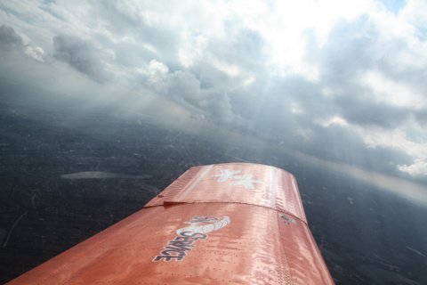 내 발 아래 펼쳐진 구름. 그 위를 날고 있는 순간은 정말 짜릿했어요.