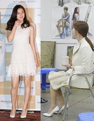 화이트 스틸레토힐 신고 앉아 있는 모습 넘 단아함!