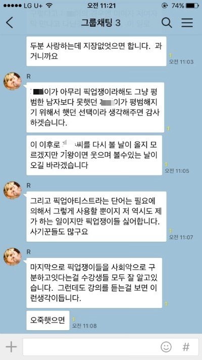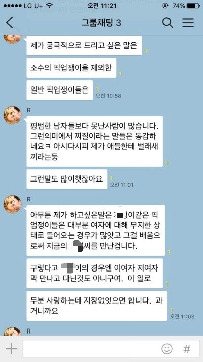 남친 지인들도 다 픽업아티스트였다니.. 이부분이 사실 좀 배신이었지만