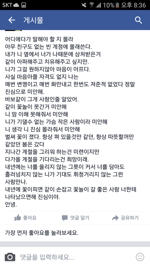 한 여잘 떠나보내는 남자의 페북