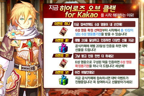 히어로즈 오브 클랜을 소개합니다. 현재 신규유저 이벤트중이라 지금 시작하시면 6성영웅을 무려 10개나 얻을수있답니다.히어로즈 오브 클랜 for Kakao 공식카페 주소 : http://cafe.naver.com/heroesofclan
