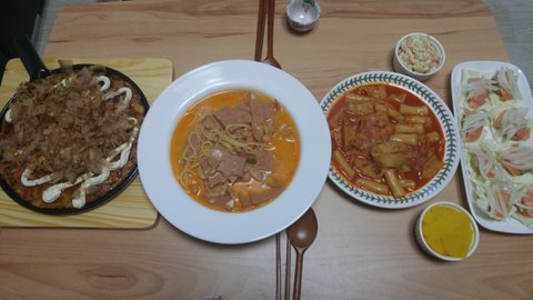 또 집술&안주(오꼬노미야끼&부대찌개파스타&떡볶이&연어쌈&마카로니)