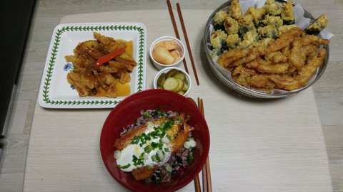 탕수육 오징어튀김 김말이 만들어 새우튀김덮밥과 냠냠