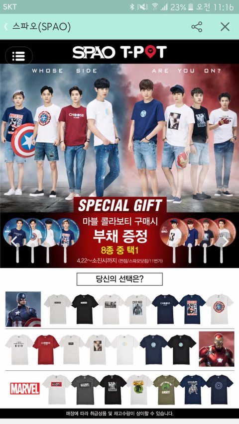 스파오 마블 콜라보 티 구매하면 부채 준대(시우민