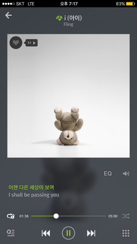 그 바로 밑에 가사가 '이젠 다른 세상이 보여'