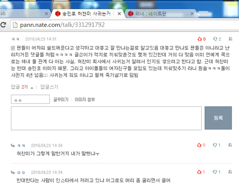 허찬미님 소속사에 자료 넘긴다는 댓글 달리자마자 ㅇㄱㄹ는 글삭하고 도망감