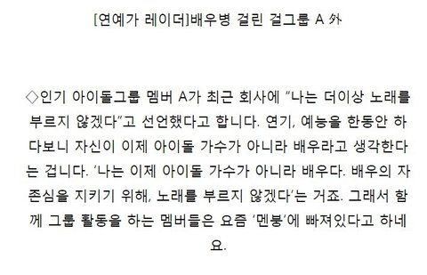 걸그룹B에서 또한명의 탈퇴라면 이미 탈퇴한 멤버가 있단얘기인가봄