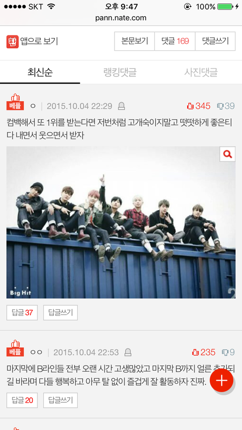 2015년 톡선에 남돌1위하기까지 걸린 시간이란 글에 댓글인데 우리 아니쥬때 애들이 마음놓고 좋아하지 못했잖아 그래서 어떤 이삐가 쓴 거 같은데 보니까 눈물날거같다.....