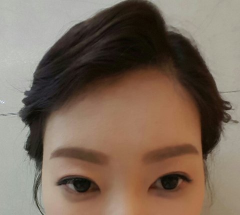 눈두덩이 핑크펄에 짱구눈썹이였는데 수정요구해서 조금 연해진거임.
