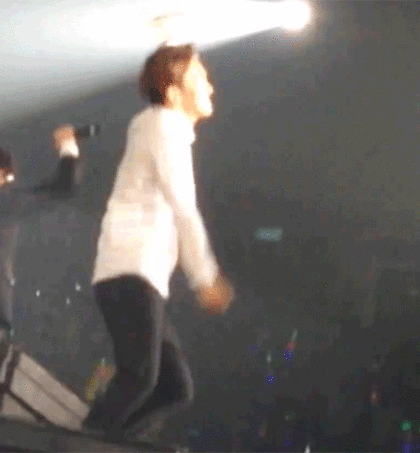 콘서트 무대위에서 발헛디뎌 넘어지지