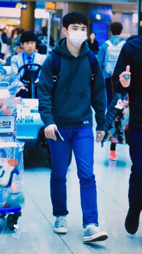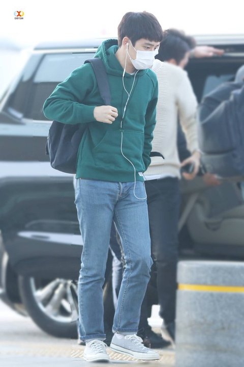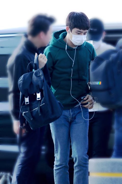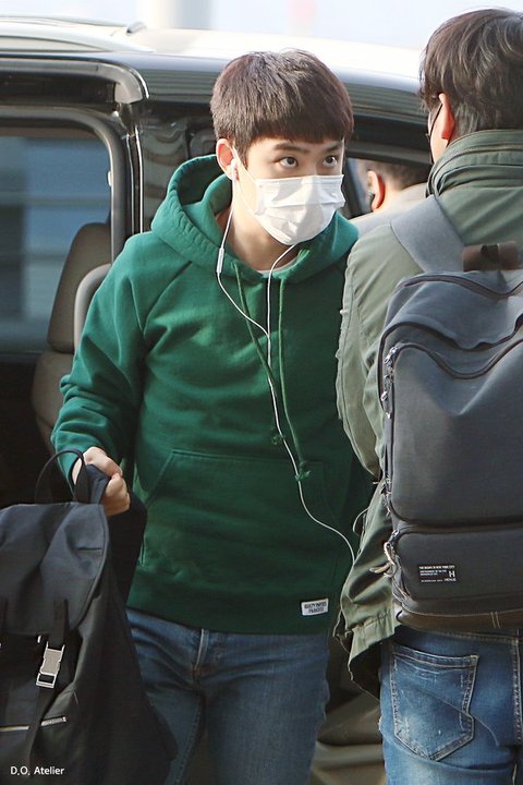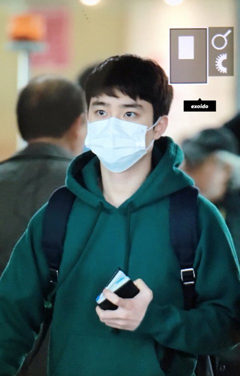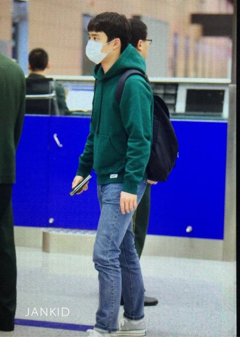 초록후드입고 출국한 경수.. 너무 귀여워~~