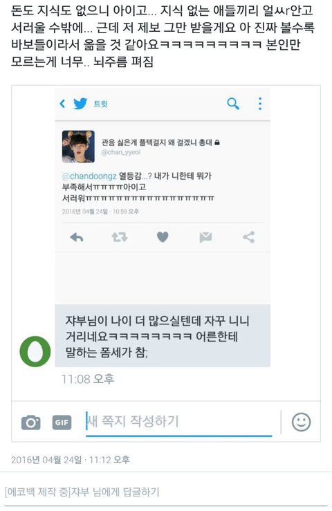 좌뷰 이사람은 왜 계속 이상하게 말을 끌고가지? ㅋㅋㅋ 서양수박 가격올라서 빡치는게 왜 열등감임ㅋㅋㅋ? 자기가 경무리 스밍 안하다가 캡하려고 급하게 틀었던건 기억안나나... 저사람 급식이라니까 자기가 어른이라면서 참겠다고 ㅋㅋㅋㅋ 저작권으로 뭐라한거 그럴 수 있는데 저 사람은 좀 그래 너무 그래........