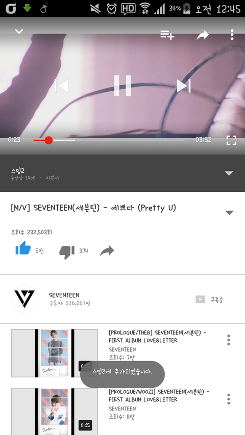 나 지금 유튭 스밍중이얌 모두 화이팅!!♡