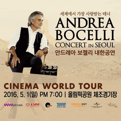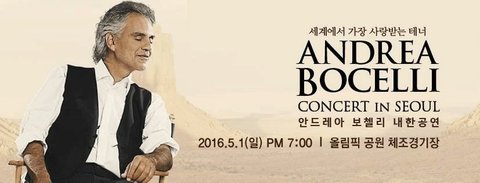 'Time to Say Goodbye'라는 곡 아시나요?? 브라이트만(Sarah Brightman)과 듀엣으로 불렀는데, 이 곡은 국내에서도 여러 텔레비전 프로그램에서 사용되고 격투기 선수로 인기를 끌고 있는 추성훈 선수가 항상 경기장에 입장할때 BGM으로 사용하여 많은 사람들에게 친숙한 곡이지요~~