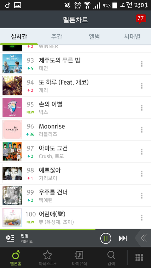 왇ㄷㄷ별빛들 멜론순위좀봐