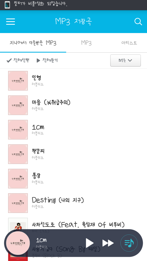 다 다운받았어 노래 너무 좋더라